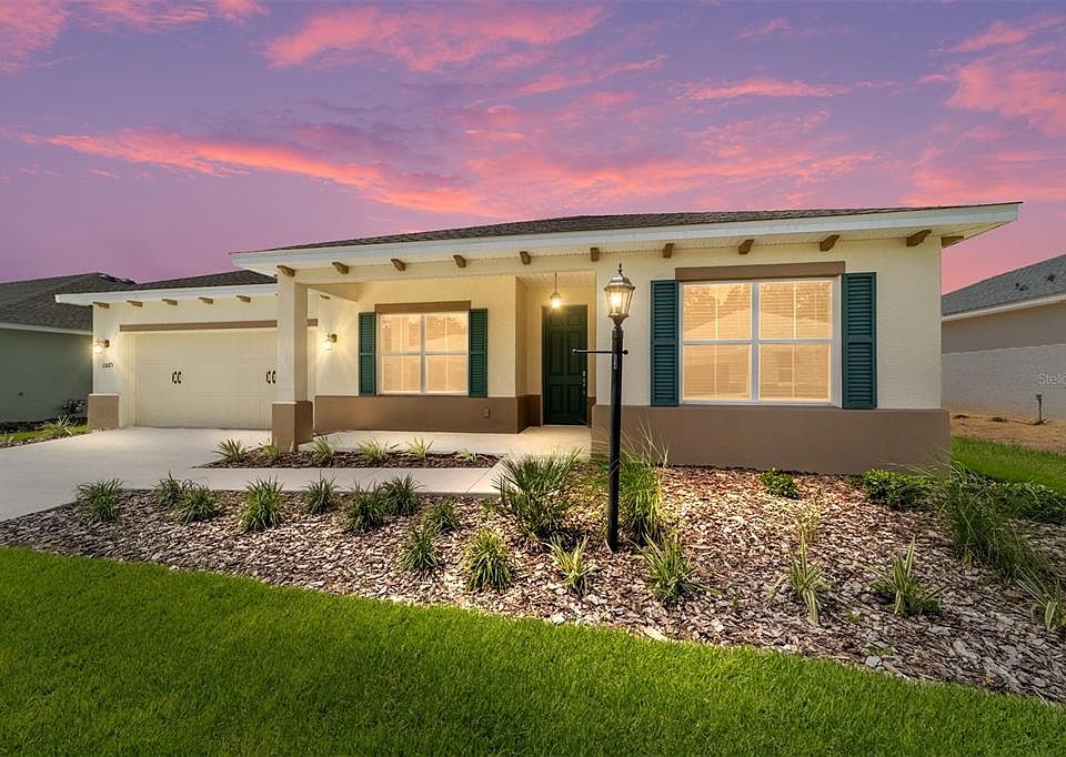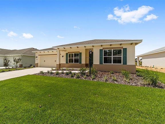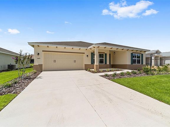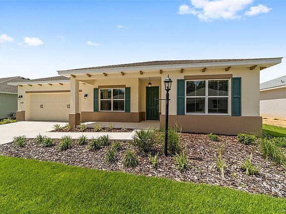 Welcome to the Ariana Model in LongLeaf Ridge at On Top of the World, Ocala’s premier 55+ active adult community. This brand-new home is thoughtfully designed with 2 bedrooms, 2 bathrooms, a versatile flex room, and a spacious 2+ car garage, blending comfort and elegance in every detail. Step inside to find luxury vinyl plank flooring and a bright, open layout. The gourmet kitchen is the heart of the home, featuring stainless-steel appliances, quartz countertops, elegant backsplash, and staggered cabinetry with crown molding. An oversized island and walk-in pantry make cooking, entertaining, and daily living effortless. The flex room with French doors is ideal for a home office, den, or hobby space. Guests will enjoy a private bedroom filled with natural light, along with a full bathroom featuring a quartz vanity and tile shower/tub combo. The primary suite offers a peaceful retreat with a large three-panel window, walk-in closet, and a spa-like en suite complete with dual sinks, quartz counters, a tiled shower with a built-in bench, glass enclosure, and linen closet. Enjoy Florida living year-round from the screened lanai, the perfect spot to relax or entertain. Located in a gated, golf cart-friendly community with world-class amenities and direct access to shopping, dining, and recreation, this home offers the lifestyle you’ve been dreaming of. Don’t miss your opportunity to own this beautifully finished, move-in ready new construction home—schedule your private showing today!