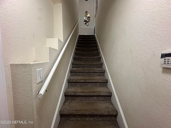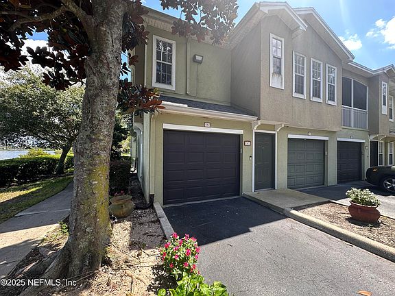 Privately situated at the end of a peaceful street in the sought-after Mirabella community, this spacious 1-bedroom, 1-bath corner unit offers the perfect blend of comfort, privacy, and convenience. The open-concept floor plan features cathedral ceilings, a kitchen with Corian countertops, a spacious living area, and a private screened-in patio, ideal for relaxing or entertaining. A sunlit computer nook at the top of the stairs provides a perfect space for remote work or study. The primary bedroom includes a generous walk-in closet and tranquil lake views. Additional highlights include an in-unit laundry area and a 1-car attached garage. Residents enjoy resort-style amenities such as a gated entrance, pool, fitness center, and clubhouse. Located just minutes from St. Johns Town Center, UNF, and major highways, this home is ideal for first-time buyers, students, or anyone looking for low-maintenance living in the heart of Jacksonville. NEW AC, NEW WATER HEATER. Seller offering a flooring allowance.