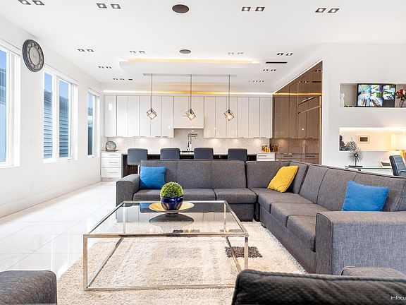 Presenting this magnificent luxury home on a 9,020 sqft lot with 3,201 sqft of elegant living space, offering high ceilings and a beautiful open layout for your family. The main floor features a spacious family room, dining, living, and kitchen, along with a master bedroom complete with walk-in closet and ensuite. Enjoy modern convenience with the Control4 smart home app, in-built speakers indoors and on the patio, and a covered patio with gas hookup that extends your living space into the backyard. The upper level boasts three large bedrooms, each with its own ensuite and closets, plus a home office. With a welcoming water feature in the front yard and parking for up to 10 vehicles, this home perfectly blends luxury, comfort, and functionality.