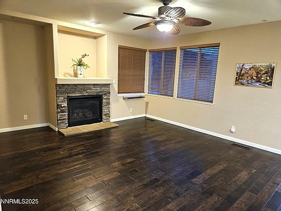 A spacious family home in a fantastic Damonte Ranch neighborhood featuring biking/walking trails, strong schools and easy access to freeways and shopping/dining in Southeast Reno. The house features a large master suite with whirlpool tub, 2 closets, double sink with granite countertop, large granite shower and new flooring. Two additional bedrooms upstairs with a large Jack & Jill bathroom and large closets and a bedroom suite downstairs. Hardwood floors throughout the downstairs with a gas fireplace and a well appointed kitchen featuring granite countertops, lots of maple cabinets, breakfast counter, and newer fridge, dishwasher, microwave and gas range. The laundry room features Samsung front-loader washer and dryer, sink and storage and leads into the large 3-car garage. The backyard features a pergola covered patio and artificial turf for easy maintenance along with several mature shade trees. Come check it out and make it your home!
