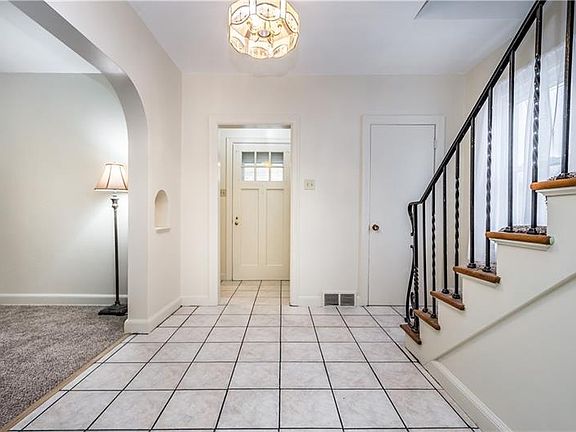 Lovely brick cape cod home located in the West Jefferson Hills School District. The covered front porch will protect guests from inclement weather or provide an outdoor space for relaxing on warm days. The large ceramic tile entry area is a great place to greet your guests and prevent tracking wet/muddy shoes through the house. Charming built-ins throughout the lower level provide a classic touch to the home. The living room features a fireplace flanked by bookcases and plenty of natural light from the large windows. The living room flows into the formal dining room for entertaining or a special dinner at home. The eat-in kitchen provides built-in storage with glass doors on the upper portion for displaying your special china or collections. Three bedrooms and a full bath complete the upper level of this home. A large double lot provides outdoor space for play or entertaining. A 2-car detached garage will protect your vehicles from the weather.