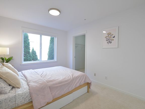 In-unit new washer/dryer, new refrigerator, and dishwasher. One bathroom with walk-in shower, another with bath-tub. Located on a quiet-street, surrounded by greenery. Spacious closets in both bedrooms - one walk-in closet.