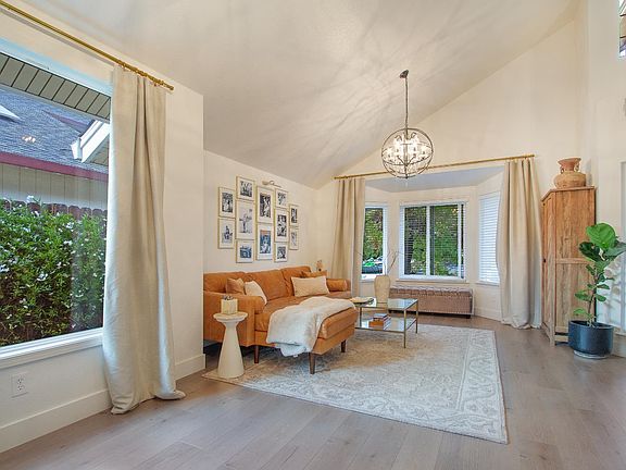 Cozy wood fireplaceStone accentsAbundant natural lightBeautiful backyardNew laminate flooringVinyl windowsSoaring ceilings