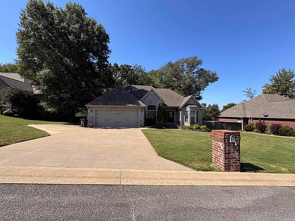 The well maintained home sits on a quiet street in Saddlebrook Estates, with a large almost half acre lot including some wooded area behind. The front entry has a barrel ceiling with brick detailing, and opens to a large living area with corner fireplace with gas logs. The dining room has a triple-tray tall ceiling and large front window. A large central kitchen features stained cabinetry and breakfast bar area great for gatherings. Refrigerator included. The owners suite is large and includes a huge double sink vanity, jetted tub, separate tile shower, and large closet space. Enjoy time on this lovely back deck with lots of trees and view of your fenced backyard below.