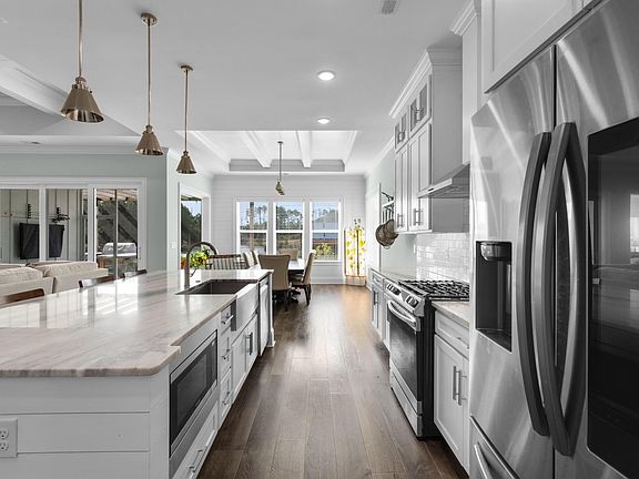 Experience luxury waterfront living in this stunning 4-bedroom, 3.5-bathroom home located in the desirable Wild Wing Plantation community. Nestled in a peaceful cul-de-sac, this home boasts breathtaking water views and an array of high-end upgrades. The interior showcases elegant craftsmanship with custom trim, molding, and ship-lap accent walls throughout. High ceilings enhance the spacious feel, featuring 10' standard ceilings with 12 tray ceilings in all bedrooms and 8' interior doors. The heart of the home is the gourmet kitchen, equipped with Samsung smart appliances, a natural gas stove, a smart French door bottom freezer refrigerator, and a Whirlpool smart washer and dryer. Step outside to your private backyard retreat, complete with a bulkhead, a fenced-in yard built to pool code, and an extended 10x20 patio with a cedar pergola. The outdoor kitchen is a chef's dream, featuring quartzite countertops, bar seating, and a built-in stainless steel Coyote Pellet Grill with a heat range of 175°-700°. Professional landscaping adds to the home's beauty, with river rock flower beds and paver block edging around all planting areas. Additional upgrades include a screened-in 10x14 porch, a natural gas fireplace for cozy evenings, epoxy-coated garage floors with smart LiftMaster openers, heated and cooled garage, and custom closets and shelving for optimal organization. A one-year prepaid lawn fertilization plan with TruGreen is included through March 2026. Wild Wing offers top of the line amenities including 2 pools, slide, splash pad, tennis courts, pickleball courts, playground, basketball courts, and within the prestigious golf community with access to wild wing courses, driving range, proshop and restaurant/banquet center. Located close to schools, grocery stores, and all of the Grand Strand's famous dining, shopping, and entertainment. You won't want to miss this. Schedule your showing today!