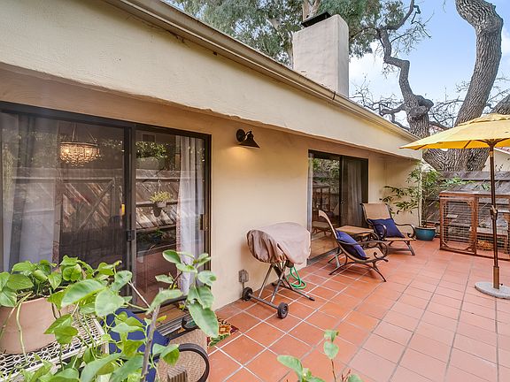 This charming 2 bedroom, 1.5 bathroom condo is move in ready. With vaulted ceilings and a gorgeous wood burning fireplace, the living room has sliding doors to a private generously sized patio. Recent upgrades include stainless steel appliances, Whirlpool whole house water softener, and Toto water efficient toilets. This is one of the most desirable units in the complex, and one of the most desirable complexes in Ojai. Community amenities include a pool, spa and meeting room. Only a short distance to downtown Ojai and just across the street from a shopping center, this home shouldn't be missed!