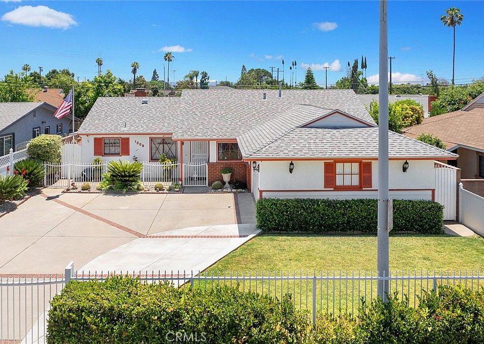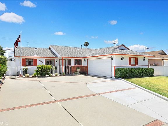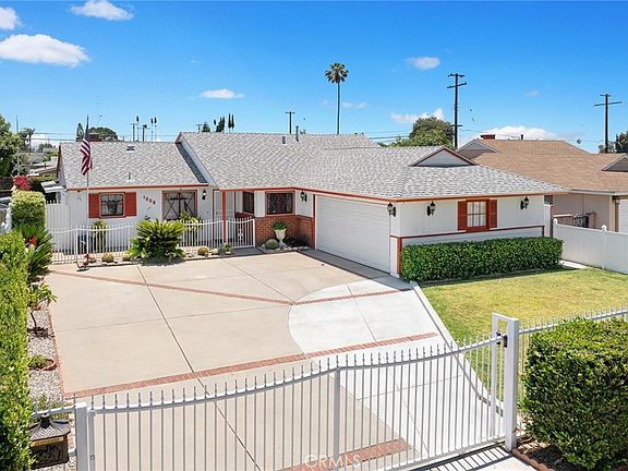 Where can you get a 4 bed, 2 bath one story ranch style home with a patio/family room and office perfect for a home business for this price? The home was measured by an appraiser to be 1471 sq ft and there is nicely enclosed, without permits, a patio with ceramic flooring and an outside door into a room measuring 18.7 by 12 feet. Also adjacent, without permit, is an office measuring 11.9 by 12 feet, with Berber carpeting and an outside door perfect for a home office. Both permitted and unpermitted areas measure a total of 1888 sq.ft. For your perusal is a floor plan as an attachment. The home has a new roof as of 2023 and the lush front yard has a fully fenced iron perimeter. The back yard with kumquat, fig and persimmon trees is enclosed as well for privacy. The living room has a brick fireplace with gas starter for those cool winter evenings and a split SuperAir conditioner for warm summer days. The primary bedroom has a remodeled newly tiled 3/4 bath attached. A 2 car garage with automatic door opener houses a sink, work cabinets and the washer and dryer which stay with the house. The estended driveway has extra parking and can even fit an RV. With an enclosed front patio you can sit and watch the world go by since this home is in move in condition ready for you to enjoy.