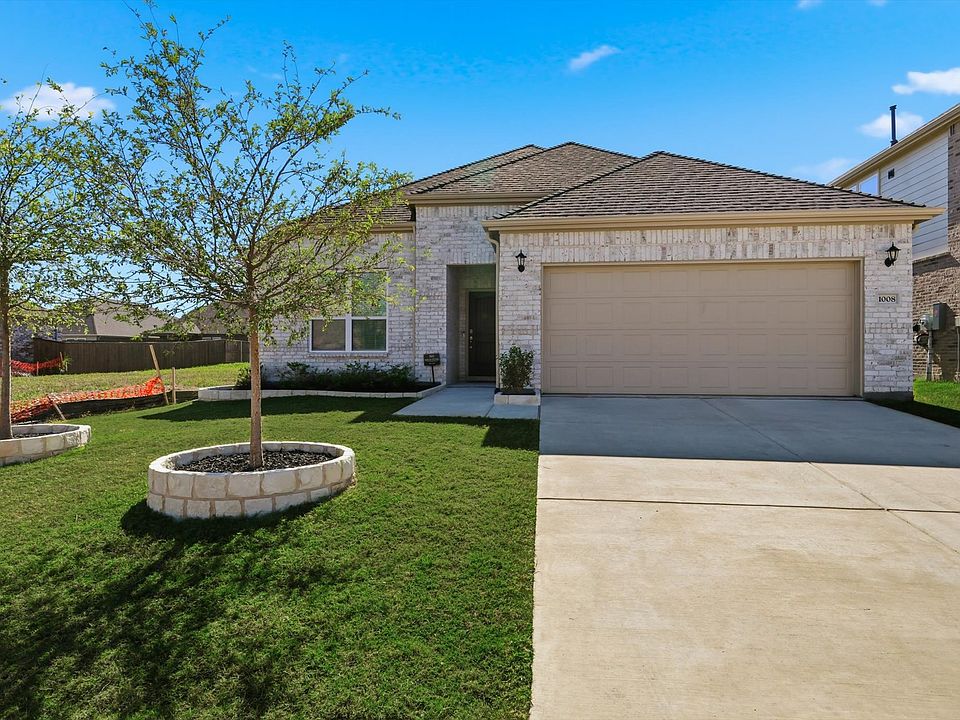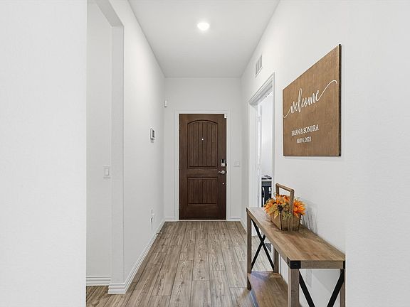 Built in 2023, this beautiful one-story home offers modern style and comfort throughout. Featuring three bedrooms, two bathrooms, and a dedicated study, the home is finished with luxury vinyl plank flooring through out main areas and quartz countertops in the kitchen. Refrigerator included. Enjoy outdoor living on the covered patio overlooking the backyard.