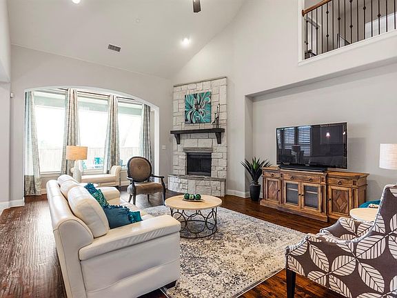 A rare opportunity to acquire this completely upgraded 5 bedroom Highland Home that shows like a model on an elevated corner lot. Walk into the grand entrance with soaring celings, hand-scraped hardwood floors and plantation shutters. The kitchen boasts floor to celing upgraded cabinets, marble back splash and enhanced granite. Relax in XL living area with custom stone fireplace, 2 gamerooms or turn-key media room with screen, projector and speakers. 5 split bedrooms and 5 bathrooms with custom tile and granite. Indoor sprinkler system, security cameras, and custom landscaping. A home for those accustomed to first class living with neighborhood trails, parks, ponds and a dog park. Roanoke taxes and NWISD