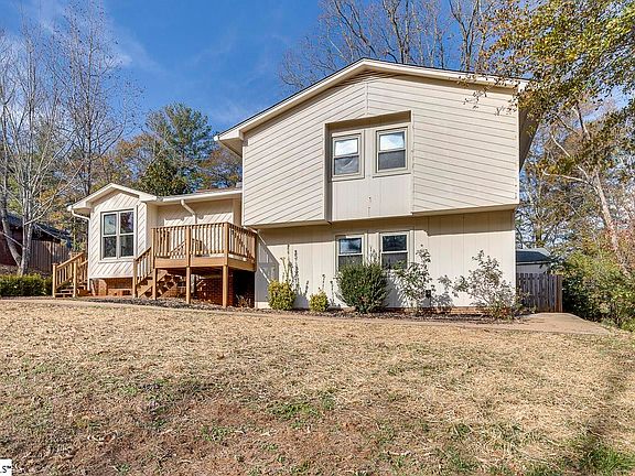 If you are looking for a 4 bedroom, 3 full bathroom home with a big backyard and lots of space, you've found your next home! This cute split level home has been freshly painted throughout with new carpet in the bedrooms! The main level is set up with a fireplace in the large living room on the back side of the home with kitchen and dining area in the front. You have access from the living room to the back deck where you can enjoy privacy in your fenced in yard while grilling out with friends and family or just relaxing on a sunny day. The lower level is perfect if you are looking for a separated living space with a nice sized living room or flex room, a bedroom, and full bathroom with new shower. Also, the laundry is located on this level. Upstairs you will find 3 bedrooms, including the primary with en-suite bathroom. The bedrooms all have new carpet and new fans. There is an outbuilding in the backyard that you can use for extra storage. This home is conveniently located in the quiet Peppertree community in Taylors which is only about 20 minutes from downtown Greenville's award winning restaurants and shopping!