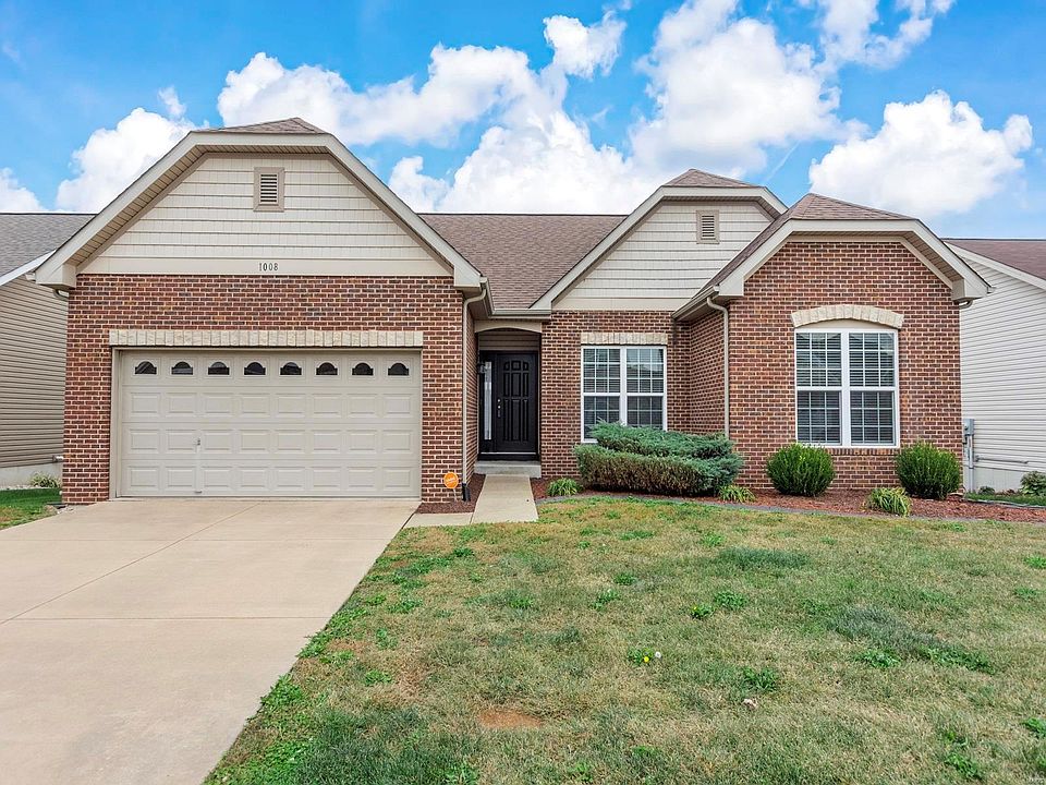 Move-in-ready and great location! Don't wait to build when you can have this one now! This like-new ranch features a beautiful brick and stone accented exterior for beautiful curb appeal. Large living room boasts an open floor plan with easy access to the newly stained deck, perfect for entertaining! Kitchen features stainless steel appliances, bartop dining, great pantry, and gorgeous flooring. Master bedroom features 12 x 5 walk-in closet, a master bath with double sinks, and a 5-foot shower. Unfinished basement is plumbed for future bath and features large daylight windows to allow for a future bedroom too. Enjoy the community swimming pool and great central location close to I-64, Scott Air Force Base, hospital, shopping, and more!