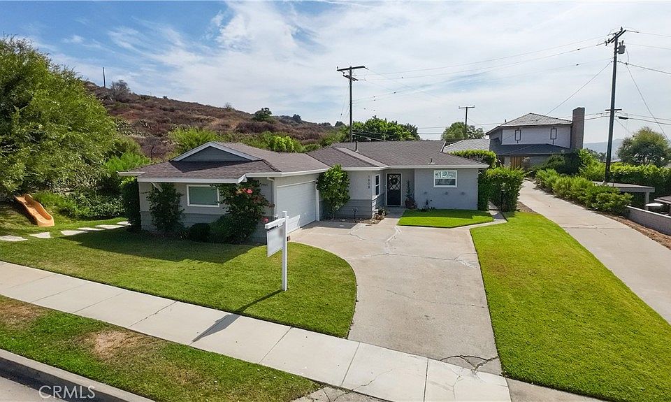 Welcome to 1008 Hibiscus St, a stunning ranch-style home with a mid century flair, nestled on a quiet private, cul-de-sac in Montebello. This immaculate residence offers unmatched privacy with no neighboring home to the left and protected land bordering the north side. Step inside to discover satin-finished concrete flooring that flows seamlessly throughout the home. The property boasts numerous upgrades, including newer roof, fascia rain gutters, double pain windows and sliding doors, remodeled kitchen, sprinkler system, tankless water heater, AC and duct work, smart Nest thermostat, Ecosmart water softener, and slumpstone retaining walls around the property. The spacious living area is highlighted by a cozy wood burning fireplace, perfect for relaxing evenings. Both bathrooms have been tastefully remodeled, making this home truly turnkey and ready for you to move in.