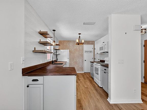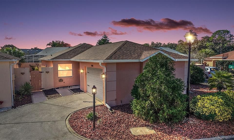One or more photo(s) has been virtually staged. BEAUTIFULLY UPDATED, BLOCK and STUCCO 2/2 Baja Courtyard Villa with BONUS ROOM on a LARGE CORNER LOT boasting ROOM FOR A POOL in the highly sought after Village of El Cortez! - JUST MINUTES to CR 466 and Hwy 441/27 as well as Spanish Springs Town Square with shopping, dining, and live nightly entertainment! NO BOND! ROOF(2021) HVAC (2019) LOW-MAINTENANCE, STONE and CONCRETE front, side, and rear yards - NO GRASS! A COVERED front entry vestibule and a MODERN door welcome you in to the foyer of this INCREDIBLE home boasting a CONVENIENT ENTRY CLOSET! A GORGEOUS galley kitchen is a CULINARY HAVEN featuring MODERN SHAKER cabinetry; RICH, DARK, BUTCHER BLOCK countertops; WOOD ACCENT shelves; and a PANTRY closet. The OPEN CONCEPT floor plan of the living, dining and kitchen create a SPACIOUS main living area showcasing GORGEOUS, LUXURY VINYL PLANK flooring and CONTEMPORARY farmhouse lighting THROUGHOUT! There’s also a FANTASTIC under-air BONUS ROOM, just off the main living area, providing an INCREDIBLE multi-purpose space. This VERSATILE ROOM offers the ideal space for a den, media room, or home office. DOUBLE sets of sliding glass doors from this room, and also another from the dining room, feature exterior awnings and allow easy access to the SPACIOUS rear and side courtyards surrounded by PRIVACY walls. This FABULOUS outdoor area offers a TRANQUIL, PRIVATE space to relax with your morning coffee, evening cocktail, a good book, or simply enjoy the beautiful Florida weather! There’s also an outdoor STORAGE SHED for easy access to all of your yard and gardening tools or seasonal items. Back inside, retreat to the primary bedroom boasting a GENEROUS WALK-IN closet. It’s en-suite bathroom features LIGHT WOOD-GRAIN cabinetry; RICH, DARK, BUTCHER BLOCK countertops; VESSEL sink; and a TILED WALK-IN shower. A SPLIT FLOOR PLAN places the second bedroom and bathroom near the front of the main living area, creating a PRIVATE guest wing and/or QUIET home office! Bedroom two offers a LARGE window and a built-in closet. The second bathroom features a WHITE vanity with RICH, DARK, BUTCHER BLOCK countertop; a tub and shower combination; and a hallway LINEN closet. Completing the package is a 23’x18’ one and half car garage with a an ABUNDANCE of WHITE cabinetry, attic access with stairs, and PLENTY of space for a car and a golf cart! This home offers LOW-MAINTENANCE living and is ideal as a primary residence, vacation home, or investment property. DON’T MISS YOUR OPPORTUNITY TO OWN THIS GORGEOUS HOME! The Village of El Cortez is conveniently located JUST MINUTES to Spanish Springs Town Square with shopping, dining, and live nightly entertainment! Also close to Lake Sumter Landing; Tierra Del Sol Country Club and Championship Golf Course; Mira Mesa Executive Golf Course; Hacienda Regional Recreation Center; Chula Vista Recreation Center; multiple pools, golf, and pickle ball; The Villages Regional Hospital; and CR 466 and Hwy 441/27 with a plethora of shopping, restaurants, banks, medical, and more! PLEASE WATCH OUR WALKTHROUGH VIDEO of this BEAUTIFULLY UPDATED HOME in a FANTASTIC LOCATION and call today to schedule your Private Showing or Virtual Tour!