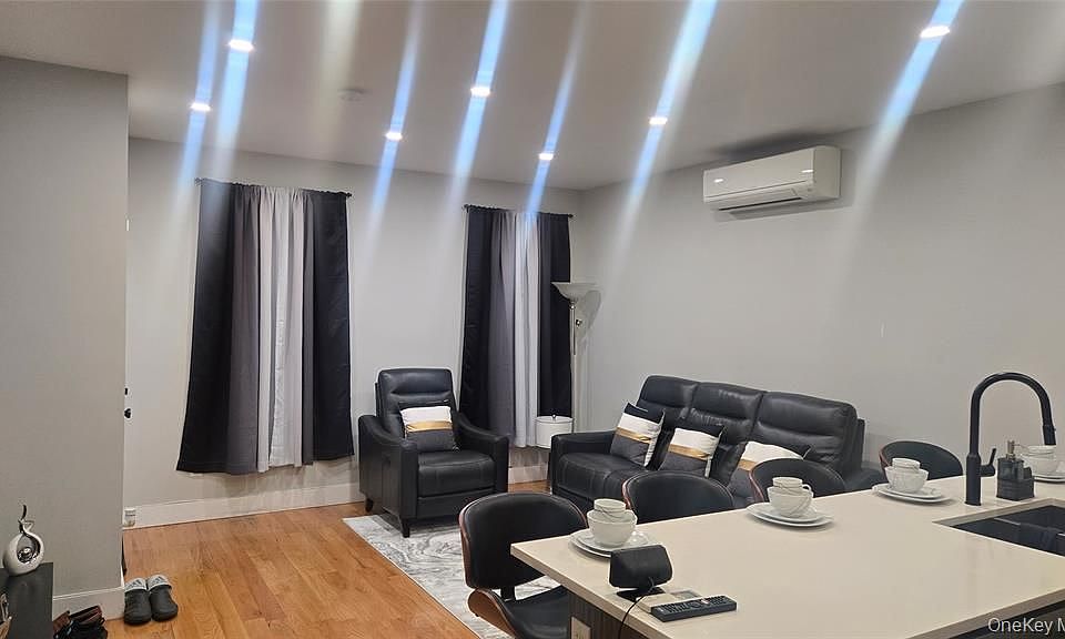 This home is equipped with central heating and cooling, ensuring a pleasant environment year-round. Additional comforts include air conditioning and ceiling fans, making it easy to stay cool during warm New York summers.
