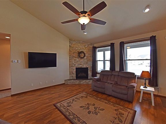 This beautiful single level home of quality construction and many upgraded finishes, has 3 generously sized bedrooms, including a gorgeous master suite with dual vanities and walk in closets. The floor plan is easy to love with its open flow throughout the kitchen, dining and living areas. All rooms boast larger windows to captivate the light air feel of the homes vaulted ceilings on top of 9' walls. Snuggle up next to the stacked stone gas fireplace in the living room with soaring ceilings, or enjoy entertaining in the kitchen, complete with Alder cabinetry and high-end counter tops, and oversized covered back patio. Two car attached garage and a fully fenced and landscaped yard simply top off this truly wonderful home.