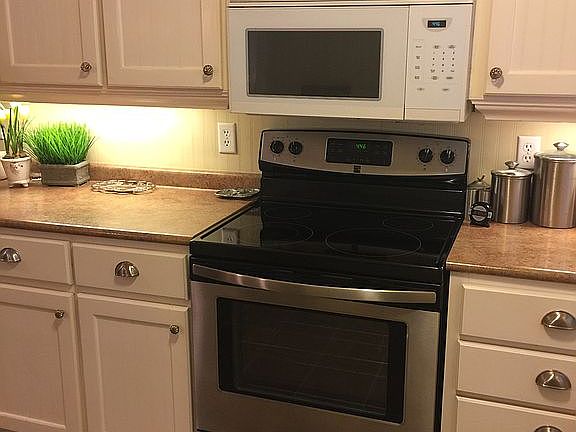 - Appliances: Dishwasher, Refrigerator, Disposal, Electric Cooktop, Electric Oven, Microwave, Electric Water Heater, Stainless Steel Appliance(s), Stove-Electric