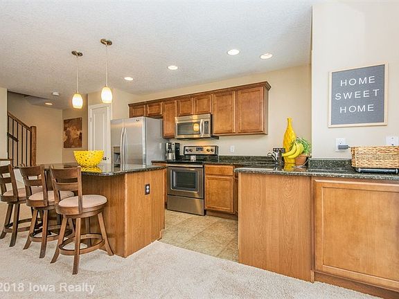 Maintenance free living at its best! This beautiful one-owner townhome with 2 car attached garage features an open concept layout, kitchen with granite countertops, center island, Whirpool stainless steel appliances, and large pantry. The family room is spacious, has an additional storage closet, and you will love the natural light from the windows and slider to the balcony style deck. Head upstairs and find a nice sized master bedroom with a walk-in closet and ensuite bath with dual vanities. The 2nd bedroom, full bathroom, ample laundry closet with shelving round out the 2nd level. Plus, the washer and dryer are included. Whether you work in downtown DSM, Ankeny, out west, or even Ames, this LOCATION could not be more CONVENIENT with easy interstate access. Low association fees of $125/month take care of the exterior maintenance, lawn and snow, trash & recycling and pets are welcome.
