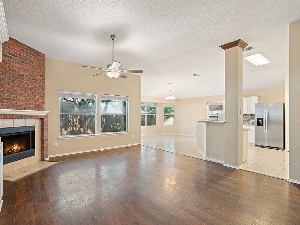 Welcome to this beautifully maintained 4-bedroom, 2-bath single-story home in the desirable Eagle Ridge community. With its open and inviting floor plan, this home is designed for comfort and convenience. Gorgeous hardwood floors flow seamlessly throughout the main living spaces, creating a warm and welcoming atmosphere. The spacious kitchen serves as the heart of the home, offering generous counter space, ample cabinetry, and a clear view into the adjoining dining and living areas perfect for everyday living or entertaining. Just off the entry, a flexible room with double doors can be used as a home office, guest suite, or fourth bedroom, complete with a walk-in closet. Down the hall are two additional bedrooms and a full shared bath, while the private primary suite is tucked away at the back. The primary retreat features a soaking tub, separate shower, and a huge walk-in closet for all your storage needs. Outside, enjoy close proximity to Meadow Lake Park, shopping, dining, and recreational amenities. Commuters will appreciate easy access to I-35 and the 130 Toll Road. Families will love that the home is zoned to highly rated Round Rock ISD schools. This lease opportunity offers the perfect blend of convenience, comfort, and location. Don't miss your chance to call Eagle Ridge home! Schools are Union Hill Elementary, Hopewell Middle, Stony Point High School.