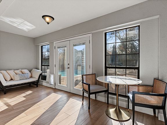 Sparkling swimming poolStylish backsplashUpdated fixturesLuxury vinyl plank flooringQuartz countertopsModern kitchenNeutral interior paint