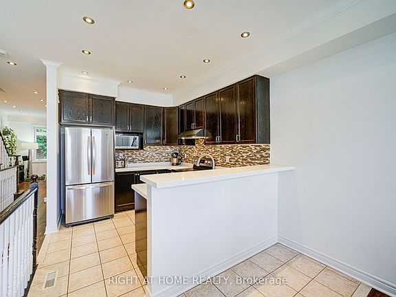 This lovely townhouse is tucked away in a private enclave, just steps from scenic Bogart Pond and beautiful wooded trails. Filled with natural light, the home offers 9-foot ceilings on the main floor, large windows, and recessed lighting for a bright, open feel. High-quality finishes are found throughout, including upgraded countertops, elegant flooring, and a hardwood staircase. Enjoy outdoor living with a front balcony overlooking the neighborhood and a private rear patio perfect for relaxing. The spacious primary bedroom features a 4-piece ensuite and a walk-in closet. The finished basement is currently set up as an entertainment area but can easily be adapted for a home office, gym, or multi-purpose space. Additional features include direct garage access, central air conditioning, and spacious of finished living space. Conveniently located near Highway 404, top-rated schools, community centers, shopping, and daily amenities. This home shows true pride of ownership, A must-see property!