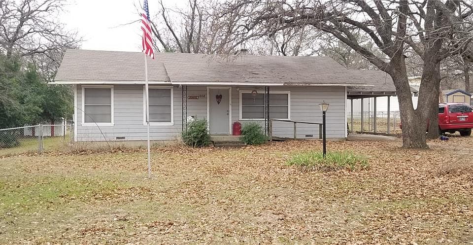 CUTE COTTAGE with character in a convenient location! This 2 bedroom, 1 bath will make a great home! The house features a large living room, large eat in kitchen, 2 nice sized bedrooms. There is some original wood flooring under the carpet & laminate in the living room & bedrooms (look in large storage closet to see the flooring!). Fridge stays! The lot is nearly half an acre, has trees, storm shelter and large fenced backyard. There is a carport & one car detached garage. Some TLC is needed. You will be close to the lake, schools, shopping in this home!