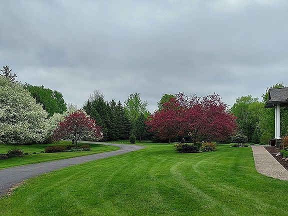 New roof 2020, new geothermal heating/cooling system 2020, new hot water heaters in 2020, new appliances. Approx. 9 acres (6 wooded). In-floor heating throughout, sprinkler system, 3 car garage deep enough for quad-cab trucks. Open concept throughout with lots of natural light. Upstairs main area 11ft ceilings, 9 ft in other rooms, all bedrooms oversized can fit king size bedroom sets and have plenty of natural light. Large three season deck recently updated with windows, glass rails, shades, cedar shake, maintenance free decking and overlooking sandstone patio with fire pit in front of large pond with bluegills and sunfish. Upstairs living and dining areas have a beautiful solid walnut 8ft x10ft entertainment center and 11ft x 8ft solid cherry breakfast buffet. Finished basement, including gorgeous 8ftx6ft L-shaped solid cherry bar. Windows throughout are large and swing completely around to allow cleaning from within house. Basement walkout to sandstone patio and fire pit in front of pond. Pond is aerated. Large 30ftx72ft heated garage/workshop offset of house and an area offset to park RV or other equipment.