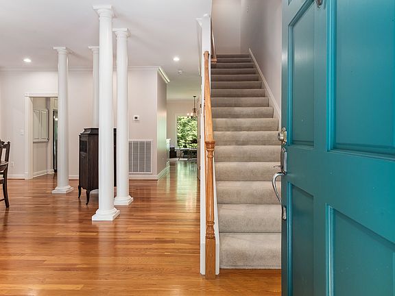 Welcome to this stunning custom-built, all-brick home nestled on 4.7 acres of serene, wooded landscape. Perched perfectly atop a ridge, this residence captures breathtaking views from every angle. The home was thoughtfully designed by its original owner, who added distinctive touches like the hand-crafted front entry arch and a custom fireplace. Inside, you’ll find light-filled interiors with gleaming hardwood floors, elegant crown molding, and 9-foot ceilings throughout. The kitchen opens to a cozy den and features a bay window that frames nature like a work of art. A remodeled kitchen with a rare dumbwaiter provide function and charm—easily transporting groceries from the garage to the kitchen and up to the second floor. The second story offers an additional 920 square feet of unfinished space for whatever your heart imagines. It has already been approved for a half bath. Relax year-round on the vaulted 15' x 11' covered back porch—perfect for morning coffee or peaceful evenings. The finished basement includes a large bedroom, full bath, recreation room, and ample storage. A 2+ car garage completes the home’s practical features.