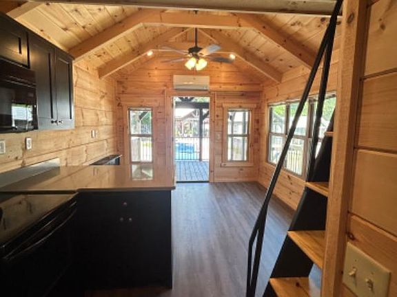 This tiny home is located directly on Lake Cunningham in Greer in a small tiny home community. There is 1/2 mile of lakeside access with dock for residents to enjoy, as a well as a community fire pit. The home is located minutes from downtown Greer. It has a fireplace, stackable washer and dryer, oven, full sized refrigerator, and can fit a queen bed on the master floor and in the loft. There is a spacious front and back porch. Owner pays utilities (except internet). There are pet restrictions including breed, size, and number. Lease term is 9, 12 or 18 months. Willing to negotiate.