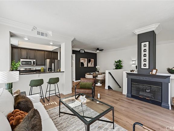 Located in the exclusive gated community of Summit Renaissance, this beautifully remodeled home offers an exceptional blend of comfort, style and modern convenience. Featuring brand new luxury plank flooring, fresh interior paint with designer colors, custom blinds, new electrical work, mostly new plumbing. All mechanical systems have been serviced and up to date. A spacious living area boasts soaring ceilings, a cozy fireplace, walk out balcony and plenty of natural light. The kitchen features granite countertops that include a breakfast bar, stainless steel appliances and beautifully finished cabinetry with plenty of storage. The spacious primary suite includes city lights views, an ensuite bathroom, double vanity sinks with granite countertops, and a generous walk in closet. Large plank flooring extends to all living areas and bedrooms which each feature custom built in closet organizers for convenient storage. Additional highlights include over-sized crown molding, new baseboards, interior full size laundry area, and a private two car garage with wall to wall custom cabinetry. Located within a desirable gated community with additional luxuries that include a beautiful pool and spa for relaxing or entertaining guests. Close to freeways, shopping, restaurants, parks, schools, hiking and biking trails and in one of Orange County's premiere communities!