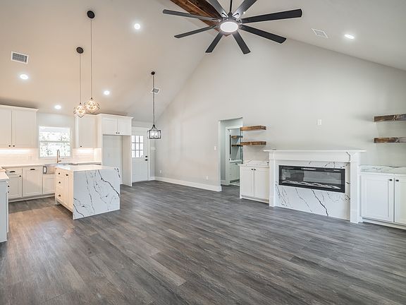 Say hello to this stunning brand, new 3-bedroom, 2-bath home nestled in the growing city of Alvarado! Situated on a large lot, this property offers plenty of room to relax, entertain, or expand. As you step inside, you’ll be welcomed by calming luxury vinyl plank flooring that flows seamlessly into the spacious kitchen. The kitchen features beautifully designed granite countertops, abundant cabinet space, and modern finishes, perfect for both everyday living and entertaining. The living room impresses with its soaring 16-foot vaulted ceiling, a cozy gas fireplace, and built-in shelving for stylish storage. Both bathrooms have been thoughtfully designed with elegant tile flooring and custom-tiled showers, creating a fresh, upscale feel throughout. Located right off Highway 35, this home is perfect for anyone who needs to commute to work while still enjoying the comfort of small-town living.
