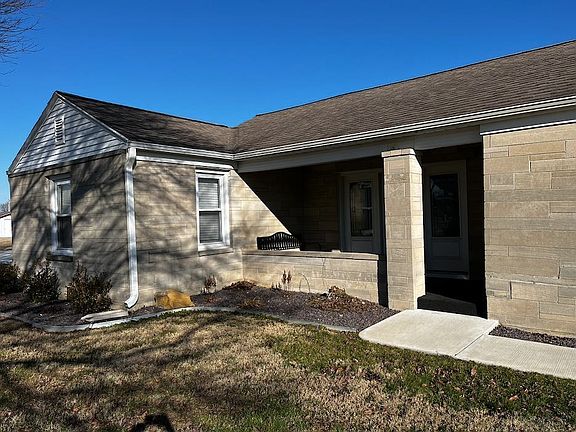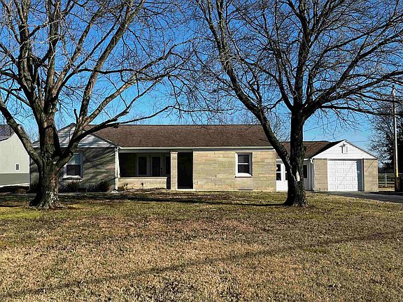 LOCATION!!! Right on the outskirts of town, this beautiful two bedroom one bathroom Bedford stone ranch has been updated and meticulously kept up! As you walk in the triple panel stain glass front door, you'll notice all the features of refinished flooring, neutral paints, wainscoting, built-ins, custom cabinetry, stainless steel appliances, and remodeled bathroom. Off the kitchen is the stairs to the open unfinished basement, door to breezeway, and deep attached garage! The laundry is currently located in the unfinished basement, but the option to move upstairs is available due to stackable laundry hookup in the main level pantry. The breezeway is also equipped with a pet door so your four legged family members can roam freely in the house as well as outside within the fenced yard that is perfect for pets or children. Continuing on, there are so many options with more than an acre to roam or build additional buildings!