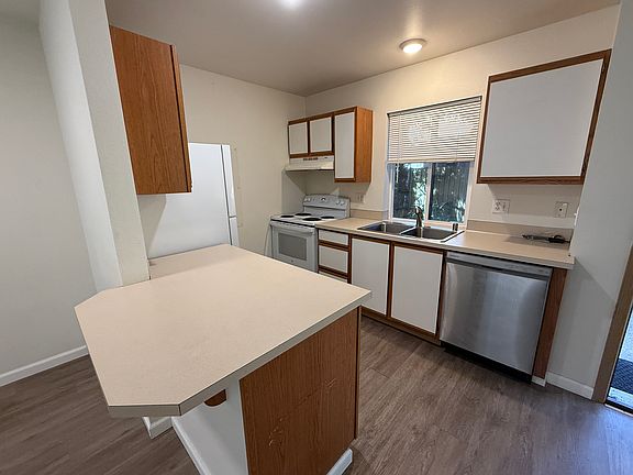 This 2 bedrooms 2 bathrooms townhouse has in-unit washer/dryers, separate patios and 2 free parking Open kitchen, formal dining spaces and large living room All floor through the whole unit End unit of the 4 Plex building Close to grocery shops, restaurants and parks Easy access to freeway and transit center