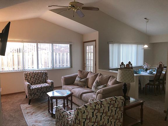 Urban Oasis This is a nice open condo 1,360 square feet, two bedrooms, two full bath also furnished optional walk-in ready. Lots of natural light. Master has a queen bed and kids room has bunkbeds, currently split as two separate beds but can be stacked. Furnishings included as shown in photos. Option to move in furnished as shown at $1,800. Walk in ready everything needed, bedsheets, Keurig, toaster etc. With no furniture rent is $1,500 Vaulted ceilings in great room, lots of natural light. Large spacious backyard with privacy fence, totally enclosed. Two private patios, one off kitchen other off master. New carpet. Conditioned Air. Absolutely no pets. No smoking. Driveway parking two spaces available, third car can fit but tight. Garage parking can be available for two cars add'l (unfurnished possible also). Near university of Toledo, golf course and strip mall in walking distance. Water is excluded, all other utilities by tenant for the unfinished option. Furnished option includes all utilities and internet. In-unit Washer and Dryer included. Samsung TV All furniture shown in photos included with furnished option. Startup kitchen included with Keurig coffee maker, microwave, toaster, calphon pans, plate ware, cups and silverware