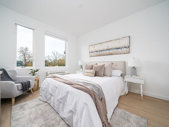 Elegant finishesStainless steel ge appliancesStylish vanitiesWalnut-style cabinetsCorner apartmentIn-unit laundryTons of windows