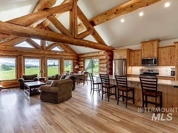 Dreamed of adding your finishing touches to a log home with stunning Idaho view and 18+ acres of wooded Idaho land? This gorgeous 3 bedroom, 2 bath home is ready for the new owners to add interior trim and finish the painting and staining! The open floor plan allows you to enjoy the views from all angles of your beautiful kitchen and living area. Large master with slider to a pad ready for a hot tub or entertaining while enjoying the expansive mountains in the distance. Radiant floors keeping you cozy in the winter months and the log home design keeping you cool in the summer months. Sit back and enjoy the turkeys, moose, deer, and elk wandering across your piece of paradise. The 30x40 shop has three bays and plenty of room for your toys. This is must see and a dream come true! If you are dreaming of additional land, this parcel is adjacent to three additional parcels being sold; 20-acres MLS #98921928, 20-acres MLS #98922817, and 67-acres MLS #98922817, see last two aerial photos for estimated parcel lines.