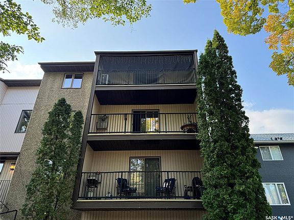 Spacious Top-Floor Condo in Prestigious Varsity View! Offering an impressive 1,267 sq ft of stylish living space, this sprawling 2-bedroom plus den unit combines size, comfort, and an unbeatable location just three blocks from the river. Step inside to find fresh paint, engineered hardwood floors, and an airy open layout designed for both relaxation and function. The generous bedrooms are paired with a versatile den—perfect for a home office or guest room—while the large laundry and storage room add everyday convenience. A roomy screened-in balcony provides a private outdoor retreat, overlooking the quiet, tree-lined street below. Practical updates include central air conditioning with individually controlled units in both bedrooms and the family room, ensuring personalized comfort. This secure, 12-unit building (with only 4 units per floor) offers underground parking with additional storage & an amenities room. Also currently included is 1 surface parking stall already paid for until August 31, 2026 but not beyond. Perfectly situated within walking distance to Royal University Hospital, with an easy commute to downtown, City Hospital, and the University, this condo delivers a rare blend of tranquility and accessibility. Move-in ready and waiting for you—book your showing today!