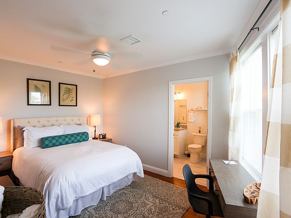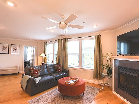 Top floor sun-filled unit, the open floor plan offers kitchen, dining, and living area. 55" flatscreen tv, gas fireplace featured in the living room, and sleeper sofa offer comfortable seating to relax and enjoy a movie night with friends and family. Renovated kitchen with stainless steel appliances and granite countertops comes fully equipped for all of your cooking needs. Each Bedroom offers a queen-sized bed, dresser, desk, and tv. In-unit laundry and central air make this the complete package to call your home away from home.
