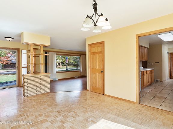 Welcome to this spacious 3 bedroom, 2 bath Ranch home with partially finished basement. Open floorplan with abundant natural light in the living and dining areas. Cozy family room with wood burning fireplace. Three generous size bedrooms. Full basement with finished rec. area and plenty of room for storage. Rare 1/2 acre wooded lot conveniently located near schools, restaurants, shopping & minutes from I-80 & I-55! Freshly sealed driveway with additional garage side parking area, professionally landscaped, new roof. Home sold as is but in excellent condition.