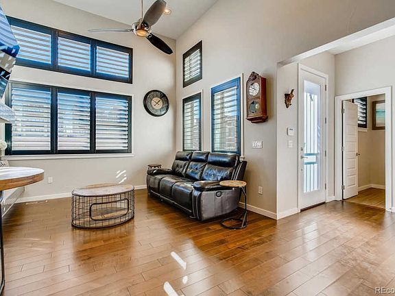 Stunning 3 bedroom townhome in Lone Tree with main floor master. Open concept floor plan with stainless steel appliances, slab granite counter tops, custom cabinetry and backsplash. Hand troweled textured walls throughout home, custom plantation shutters, hardwood floors on main level and custom tile work surrounding fireplace. Full finished basement includes additional bedroom, bathroom and large living/recreation room perfect for entertaining. Upper level features spacious third bedroom & bathroom in addition to loft area ideal for office space or additional living area. Well built, energy efficient unit with upgraded triple pane windows and upgraded Solar Array option complete with pre-paid lease. Built in whole house vacuum system and alarm system. Upgraded 97% efficient carrier furnace/AC with heat pump. Fully finished attached 2 car garage with 220 electrical outlet for electric vehicle charging. Large front courtyard includes great views of open space and is perfect for enjoying Colorado evenings. Amazing location conveniently located near I-25, trails, light rail, shops and restaurants.