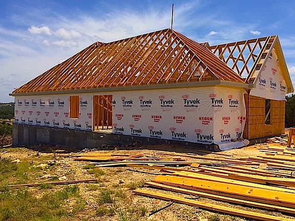 Designed to Delight! Newer home with great curb appeal, stone exterior, metal roof & stunning hill country views on 1.4 private acres. This MIL plan features stained concrete & hardwood floors, open kitchen with custom cabinets, granite counters, stone fireplace, arches, high ceilings & designer touches throughout. Tons of windows off the living area for great views & natural light. Covered back porch & additional circular drive added for easy parking & access. Study can be used as optional 4th bedroom or 2nd living.