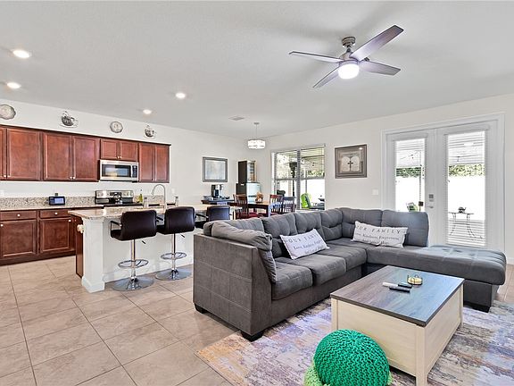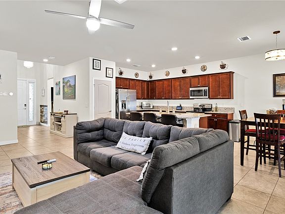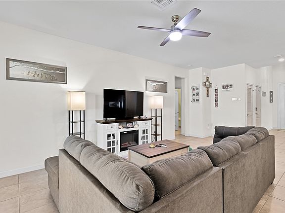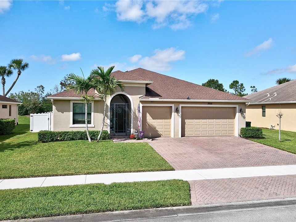 Energy-efficient living meets stylish comfort in this thoughtfully upgraded 3 bedroom, 3 bath, 3 car garage home. Enjoy ultra-low electric bills under $30 with fully paid off state-of-the-art Tesla solar panels! Inside, you'll find tile flooring throughout—no carpet—plus custom closets, granite countertops, stainless steel appliances, and crown molding on the kitchen cabinets. Exterior upgrades include a screened patio that spans the width of the home, gutters, and a white vinyl privacy-fenced backyard. Come and enjoy the amenity rich community of Verona Trace today.