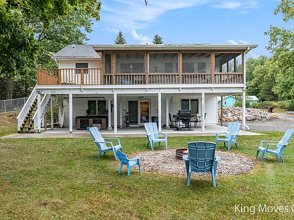 Welcome to this peaceful 3-bedroom, 2-bathroom ranch home with stunning waterfront views, offering endless opportunities for relaxation and adventure! Currently used as a successful Airbnb but would make an ideal year round home. Main level is an open floor plan with spacious kitchen, dining area and living room plus 2 bedrooms and full bath. Spacious walk-out basement with Rec Room, 3rd bedroom and bathroom, perfect for guests or added living space. Enjoy mornings on the large, covered porch overlooking the water, or evenings on the patio below. The expansive yard offers plenty of room for outdoor activities, and the cozy fireplace area is perfect for gatherings. Whether you're kayaking, fishing, or simply unwinding by the water, this property is your perfect escape!