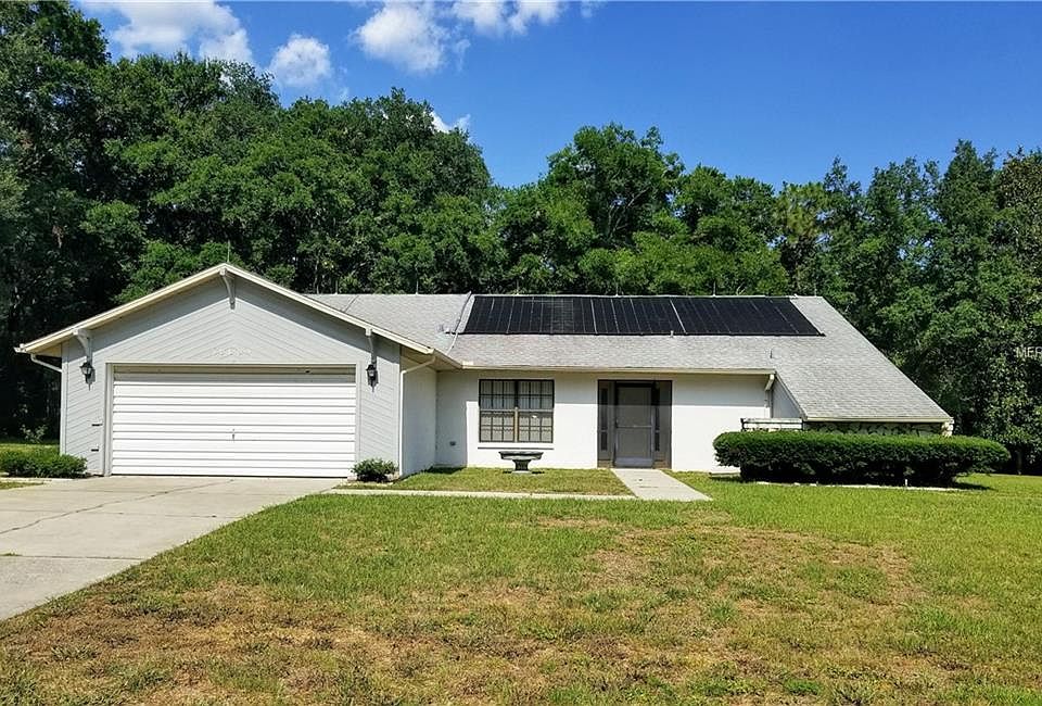 MORE PICTURES COMING SOON! The perfect opportunity to live in Dogwood Estates! This spacious open floor plan sits on just over a half an acre! No neighbors to the right and private backyard. The open concept kitchen has lots of cabinet space and a breakfast nook. The large living room boasts vaulted ceilings. Split floor plan with walk in closets in BOTH bedrooms. The 2 car garage has built in cabinets. There is also a separate attached storage area for a lawn mower. Out back you have a covered patio that overlooks the screened in pool. With a thick tree line in the back you will have lots of privacy. This home is just waiting for you to put your personal touch and make it your own. Don't miss the opportunity to live in Brooksville Country Club! Schedule your appointment today!