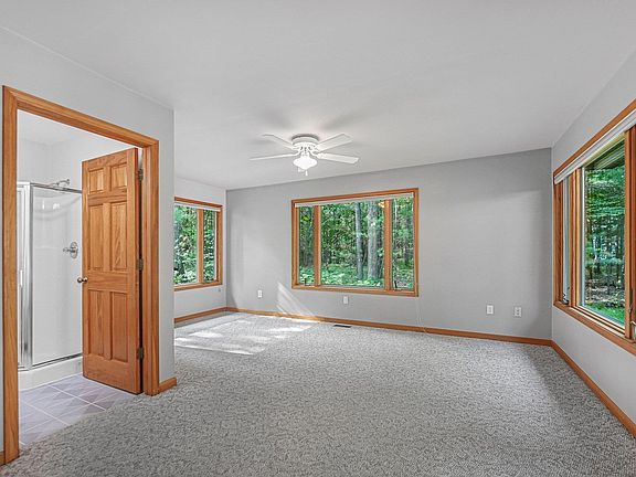 Wake up to the relaxing sound of loons in this privately wooded nature scape. This well cared for home is positioned on a quiet street across from Cedar Hedge Lake, with two shared beach access points and new community dock. Home interior has beautiful polished wood paneling, built-in bookcases, fireplace and sunroom to enjoy the beauty of the outdoors in every season. Enjoy the culture and arts of nearby Interlochen Center for the Arts and just a short drive to downtown Traverse City.