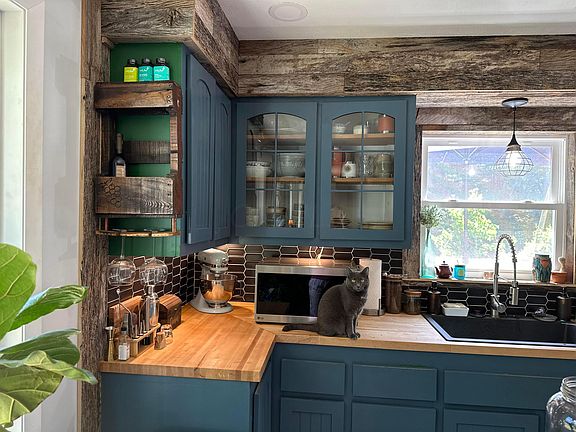 Completely renovated ranch with walkout basement situated in a valley with stocked pond and deck around the whole front side of the house surrounded by trees. In the last two years - new roof, siding, windows, deck, flooring (wood and tile), drywall, paint, all new lighting fixtures, updated electical panel and wiring, insulation, mostly reconstructed attached garage and new well pump. Added first floor laundry. Primary bedroom has pine accent wall, custom built closet and added half bath with pine accent wall. Full bath pine accent wall, custom vanity, beautiful tiled shower/bathtub with wall niche. Kitchen has reclaimed barnwood, custom butcherblock countertops, custom cabinet doors and island.