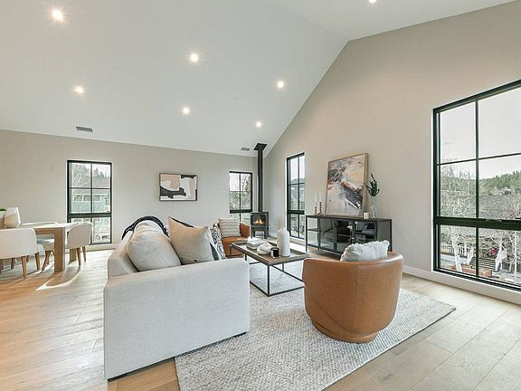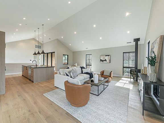 From the moment you arrive, the striking wood exterior and welcoming covered front porch pay tribute to Truckee's heritage while introducing a fully modernized retreat inside. Wide-plank hardwood floors, soaring vaulted ceilings, and oversized black-trimmed windows create bright, airy interiors filled with natural light.