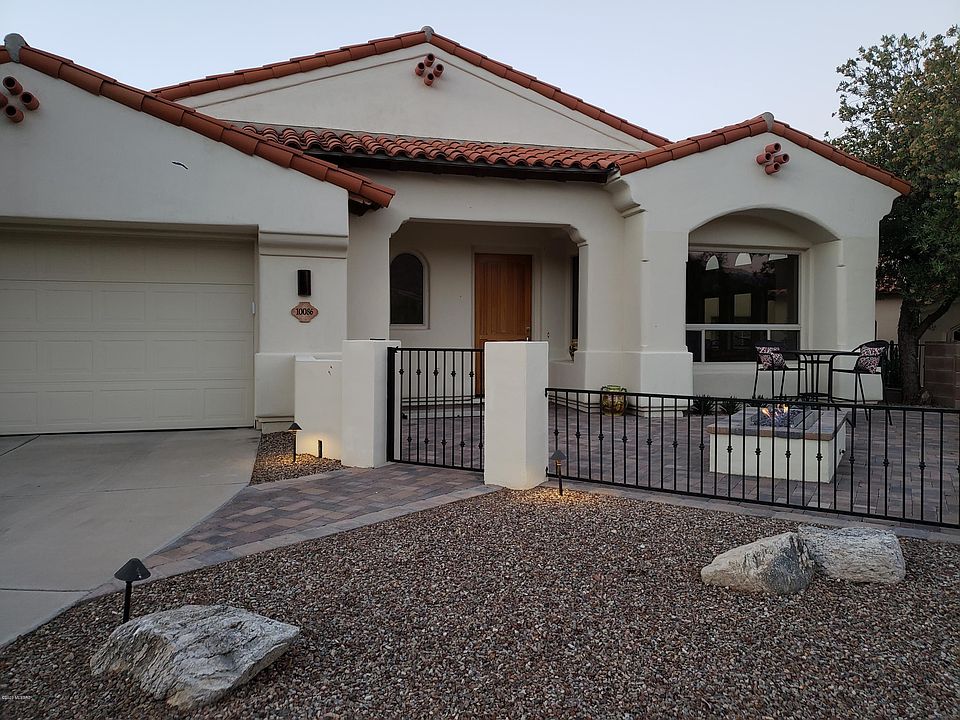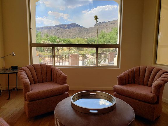 This beautiful home was remodeled inside and outside in 2019. Stranded bamboo wood flooring, new grout in tile areas. New solid surface counter tops in kitchen and all baths. Upgraded kitchen, Hickory cabinets, butlers pantry, and all bathrooms have new tile and upgraded glass enclosures. Fire pits in front and back new spa in 2019. Views of the Catalina mountains, and Arizona National Golf Course. Located at the end of a quiet cul de sac. Plantation shutters and upgraded cordless blinds. Oversize 2 car garage. High ceilings, upgraded LED lighting, skylights and lots of natural lighting. Paver front patio with beautiful fire pit to enjoy the mountains, and golf course views. Water softener and two zoned HVAC systems. Alarm system. Plumbed for central vacuum. Sabino Springs HOA offers, recreation facilities, pool, spa and gym The wildcat Grill.