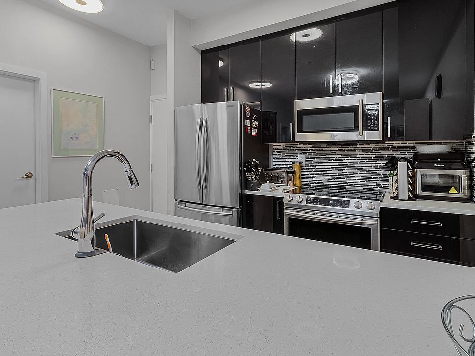 Spacious and updated condo in Guildford! Features a large deck, soaring 9'7 ceilings, a chef-inspired kitchen with quartz countertops and stainless steel appliances, bright open layout, large primary bedroom, a versatile den and 2 parking stalls. Conveniently located near Guildford Town Centre, transit, parks, restaurants, and quick Hwy 1 access. Move-in-ready and perfect for first-time buyers, downsizers, or investors!