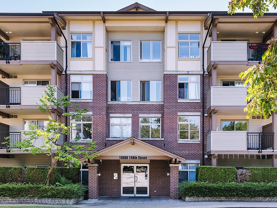 Guildford Park Place-a welcome community for all! Whether you are a first time home buyer or looking to down size, this move-in-ready 1 bed plus large den penthouse offers high ceilings, airy & ample space, large covered deck, mountain views & a convenient location for daily living needs! Laminate throughout, freshly painted & newer washer/dryer. Exclusive amenities shared between all buildings/residents: fitness centre, outdoor swimming pools, saunas, tennis courts, a whirlpool spa, multi-purpose party lounge. Centrally located to Green Timbers Urban Forest offering walking/cycling trails, walking distance to Guildford Town Centre, public transit & Guildford Recreation Centre/public library.