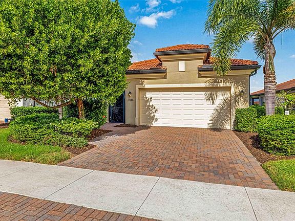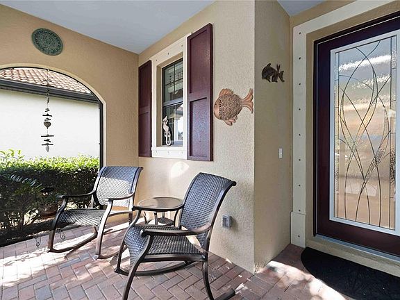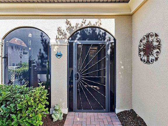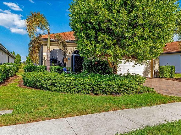 Come see this Charming 8 year old single family home located in an active resort style community. Abundant light in this spacious open floor plan with an expansive preserve/waterfront view. This home offers 2 Bedrooms, 2 Baths, a Flexroom/Den, and full Dining-room, stainless steel appliances, luxury vinyl master bedroom flooring, diagonal tile flooring throughout. The Upgraded 30' extended lanai and the screened front porch add even more tranquil space to this already open floor plan. The $60k added value upgrades include Hurricane Accordion Shutters, Impact glass designer front door, the 30' Extended Lanai with new screens and premium pavers, 220v dedicated electric to the Hot Springs Spa hot tub, luxury vinyl master bedroom flooring, expanded driveway, gutters and baffles, an added kitchen pantry, beautiful glass backsplash, garage storage racks, attic stairway with attic flooring, dedicated electric outlet in garage, upgraded ceiling fans, timers, and several smart home features. The master suite has 2 walk-in closets and en-suite bathroom with double sinks. What you will love about this home is the location - nestled in Sarasota National, has an Audubon International Certified Signature Sanctuary Golf Course in this gated community with 1,300 acres of preserves and lakes. From this waterfront view, you will witness bird migrations, eagles, osprey, turtles, hawks, alligators, otters, sandhill cranes, bobcats, panthers and much more! If you are looking for amenities, look no further as Sarasota National offers resort style living! Exercise at the fitness center or lap pool, play pickleball, bocce or tennis, swim in the resort pool, relax in the hot tub and relax under an umbrella, participate with others in the game rooms, dine and drink at the tiki-bar, outdoor or indoor full-service dining room during themed nights such as Prime-Rib night. The dog park has recently been upgraded, there’s a playground for the family, an event lawn, organized weekly themed events, music nights, trivia, bingo, and year-round fun, all ready to fill your leisure time. The coffee lounge is another place to relax and grab a book. The Hurricane accordion shutters and a beautiful hurricane impact front door will ease your mind of any worries - 15 minutes and ready! This Estate home is also maintenance grounds free - no worries about irrigation timers, hedges and trees to be trimmed, mulch placed in the gardens, mowing, lawn treatments…. you can be away a week or months without stressing about your home - a well-deserved carefree lifestyle! Basic cable is included too! The granite counter kitchen offers plenty of space offering a larger working kitchen area with the new pantry added. The light and airy open space floor plan makes it comfortable to entertain both inside and out. Very few homes are currently for sale in this lower HOA community that does not require any golf resort fees. Conveniently located near Wellen Park and beaches.